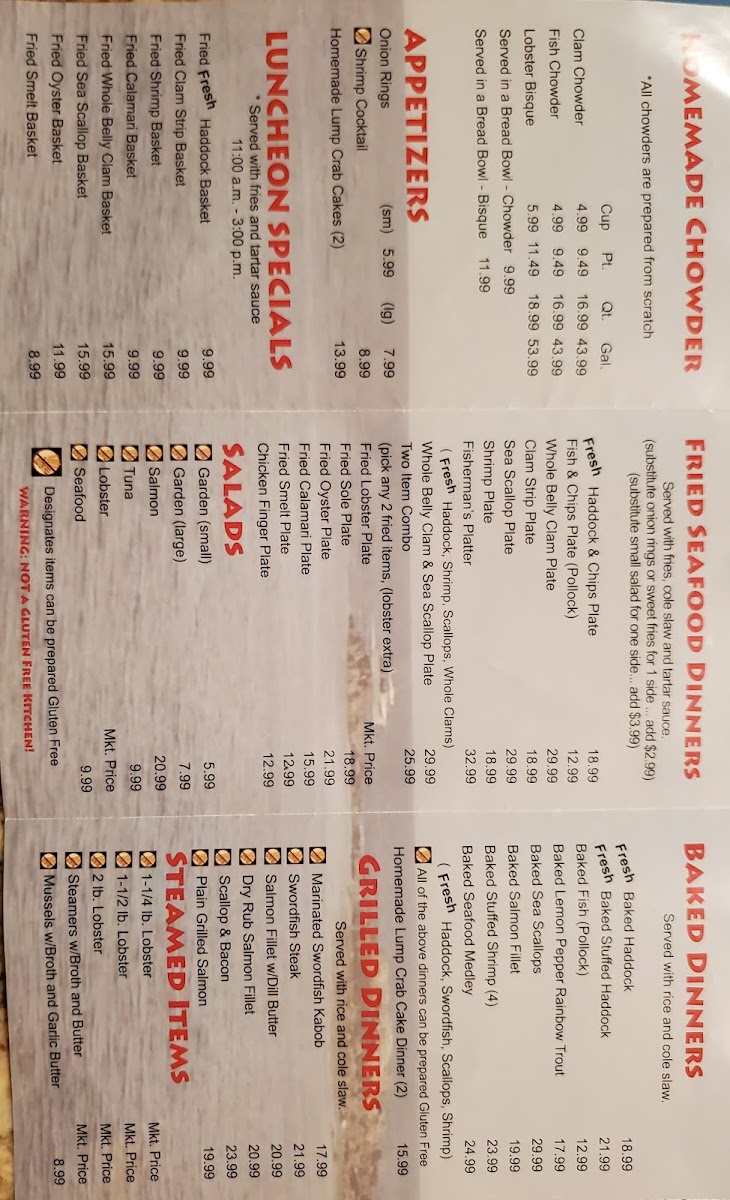 The menu at West Boylston Seafood & Restaurant offers a straightforward, casual selection focused on fresh seafood and comforting sides. You’ll find a variety of steamed and fried options that feel right at home in a relaxed, family-friendly setting. From classics like lobster rolls and clam chowder to hearty platters featuring haddock, scallops, and shrimp, the menu invites diners to enjoy familiar flavors in a welcoming atmosphere.